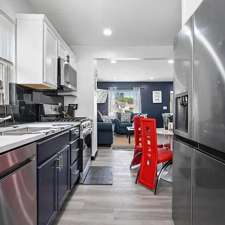 Een ingerichte keuken is uitgerust met koffie- en theevoorzieningen, een koelkast, een oven zodat gasten hun eigen maaltijden kunnen bereiden. Het busstation Sheridan & 18th Street bevindt zich op een korte afstand van North Chi Retreatnavysaunatiki Bargames villa en biedt vervoersalternatieven in de omgeving.